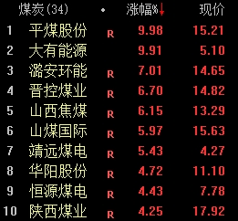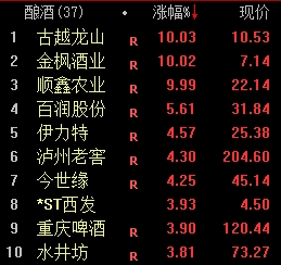 三大指数早盘高开后快速走高,创业板指一度涨超2%。之后涨幅收窄,临近午间收盘前再度小幅拉升。截至午间收盘,沪指涨1.11%,深成指涨1.33%,创业板指涨1.54%。个股涨多跌少,两市合计超3000只个股上涨,半日成交5666亿元。 南财主题库显示,煤炭、有色等周期类板块以及酿酒、食品饮料等消费类板块早间表现活跃,而房地产、新冠药概念等板块跌幅靠前。 煤炭板块震荡走高。平煤股份(15.210, 1.38, 9.98%)、大有能源(5.100,0.46, 9.91%)涨停,潞安环能(14.650, 0.96, 7.01%)、晋控煤业(14.820,0.93, 6.70%)、山西焦煤(13.290, 0.77, 6.15%)等大涨。 酿酒板块盘中快速拉升。古越龙山(10.530, 0.96, 10.03%)、金枫酒业(7.140, 0.65, 10.02%)、顺鑫农业(22.140, 2.01, 9.99%)封板,百润股份(31.840, 1.69, 5.61%)、伊力特(25.380, 1.11, 4.57%)、泸州老窖(204.600, 8.43, 4.30%)等涨幅居前。 房地产板块出现调整,金科股份(3.710, -0.40, -9.73%)、福星股份(6.240,-0.66, -9.57%)跌超9%。 新冠药概念板块走低,大理药业(13.670, -1.10, -7.45%)、君实生物(107.400, -7.72, -6.71%)-U、华润双鹤(28.140, -1.87, -6.23%)等跌幅居前。 |