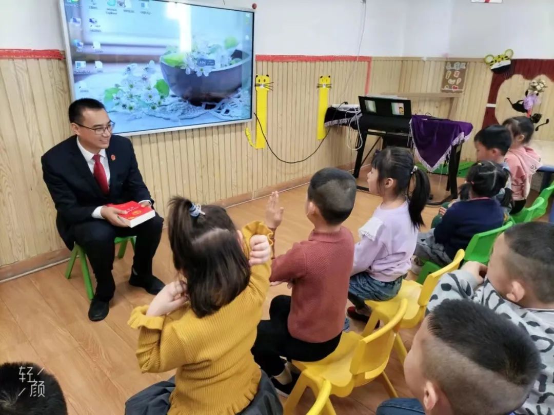 该院五彩湾人民法庭副庭长牛文武聘任为该县第七幼儿园的法治副校长期间,经常去给幼儿园孩子开展不给陌生人开门、不吃不拿陌生人给的食物、防触电、防溺水等基础幼儿普法,同时和幼儿园老师就《家庭教育促进法》共同学习,提升教师与学生家长的配合联动,共同关注学龄前儿童的身心健康发展。