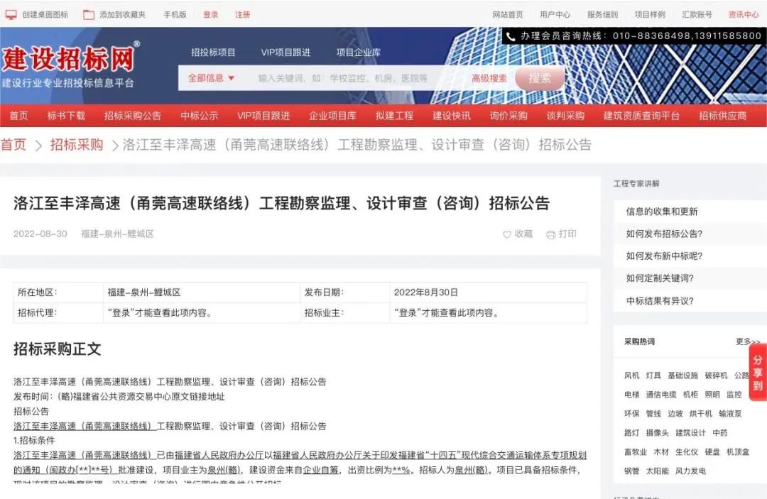 最新消息 洛江至丰泽高速 (甬莞高速联络线) 近日勘察设计招标 —
