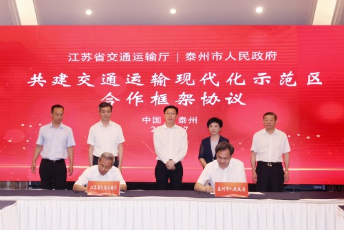 7月18日,省交通运输厅与泰州市人民政府签署合作框架协议,携手助力泰州建设长三角区域性综合交通枢纽城市,聚力打造交通运输现代化示范区。省交通运输厅厅长、党组书记兼省铁路办主任吴永宏与泰州市人民政府市长万闻华进行了工作座谈,共同见证签约。省交通运输厅副厅长惠先宝、省铁路办副主任朱培德、泰州市副市长刘志明等参加活动。