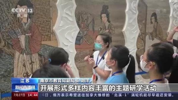 南京市教育局副局长 刘洋:采取专题学习、项目研究、互动体验、实践寻访等方式,带领我们全市的中小学生走进165个红色文化的资源点,还有127个市中小学生研学实践教育基地,开展形式多样、内容丰富的主题研学活动。