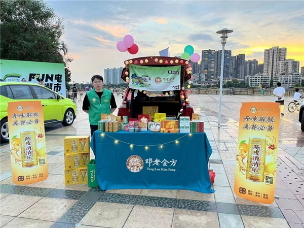 2022年8月19、20日晚,广州市华南新城小区滨江文化广场热闹非凡,一整排合创Z03、007组成大型后备箱集市,其中,EDG战队电竞周边、邓老金方国潮养生佳品、合创Z03车内影院、合生活供应链系列产品、中国电信......丰富的活动和多样的国潮商品,汽车后备箱秒变生活大秀场,给社区众多居民带来新潮、好玩的消费体验。合创汽车、合生活科技集团共同打造的社区营销生态IP——“Fun电潮市”首次亮相。