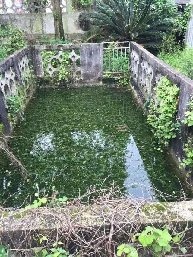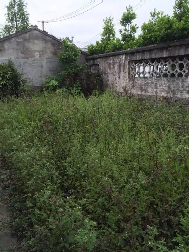 院子前面的鱼塘 太久没人来住,庭院里的杂草长到膝盖以上,迫不得已,第一次请了工人除草翻土。