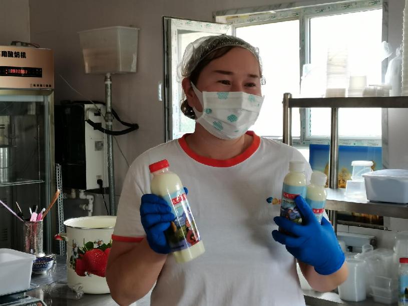 “听着可可托海的牧羊人,和最爱的人喝可可托海酸奶,这是多么幸福的事情......夫妻树、哈萨克族姑娘怀抱小羊羔绘图......”将印有相关字样和绘图的包装纸一张张贴在瓶子上,成为努尔江·木拉提别克和工人每天的熟悉动作,一个不大的小作坊也就成了努尔江·木拉提别克的梦圆地。 现在努尔江·木拉提别克的小作坊每天可以生产奶疙瘩、酸奶等奶制品达两百公斤,除了销售给当地居民,也受到各地游客的青睐。为了把这个不大的小作坊做得更好,她还雇了三个和她一样有梦想的年轻人一起生产。“一个人的力量是有限的,我希望有朝一日,能有很多的人加入到这个行列,把哈萨克特色奶制品做成规模,做成大产业,旺销疆内外。”努尔江·木拉提别克说。