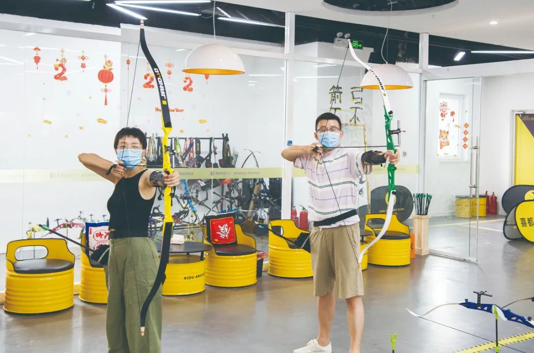 市民在喜都射箭场内练习射箭。