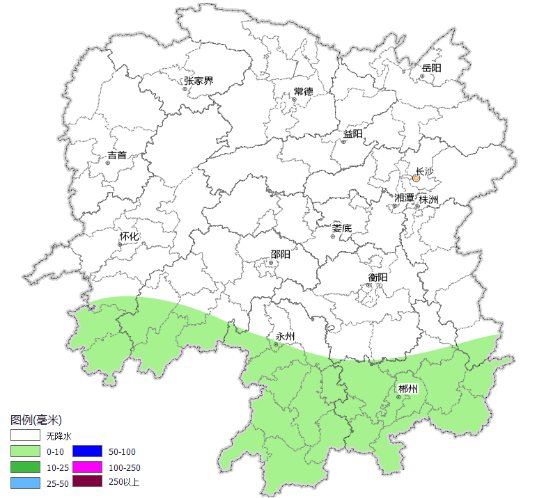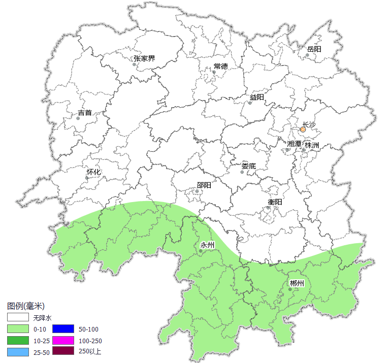 13日20时至14日20时 晴天间多云,其中怀化南部、邵阳南部、永州南部、郴州、株洲南部局地有阵雨或雷阵雨;南风2~3级;最高气温湘南35~37℃,其他地区38~40℃;最低气温湘西25~27℃,其他地区27~29℃。