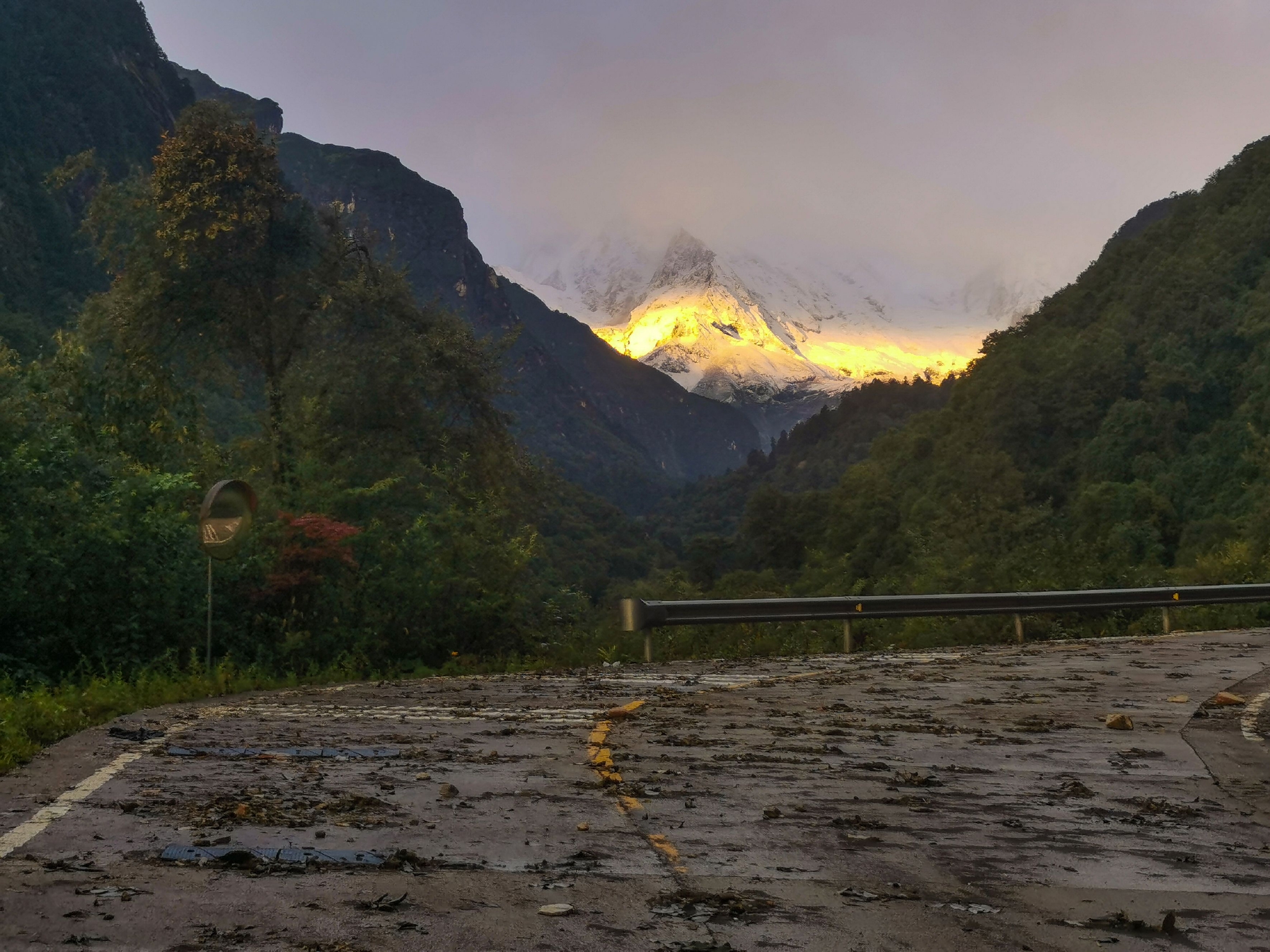 这是9月10日拍摄的海螺沟景区内部道路和贡嘎雪山侧峰。新华社发(四川省冶勘设计集团有限公司供图) |